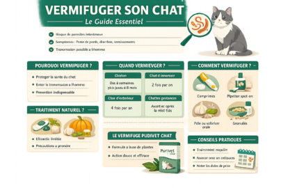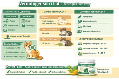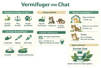 Je vais générer le code HTML complet et optimisé SEO pour cet article sur la vermifugation du chat. « `html Vermifuger…